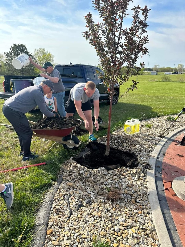 City of Hiawatha Tree Board Members, David Middendorf, Matt Sprick, Richard Jarvis & Nick Haedt and {Future Member} Ben Haedt, honored last week's Arbor Day by planting a flowering crab tree along the walking trail this morning near Noble Park. A beautiful addition to the rest area - thanks, Tree Board