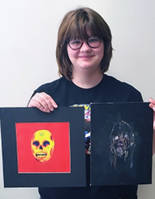 Royal Valley HS senior Hannah Bechtel had two of her creations recognized by Scholastic. She received a Silver Key for "i don't remember her face" Painting (Pictured on the right). She also was awarded