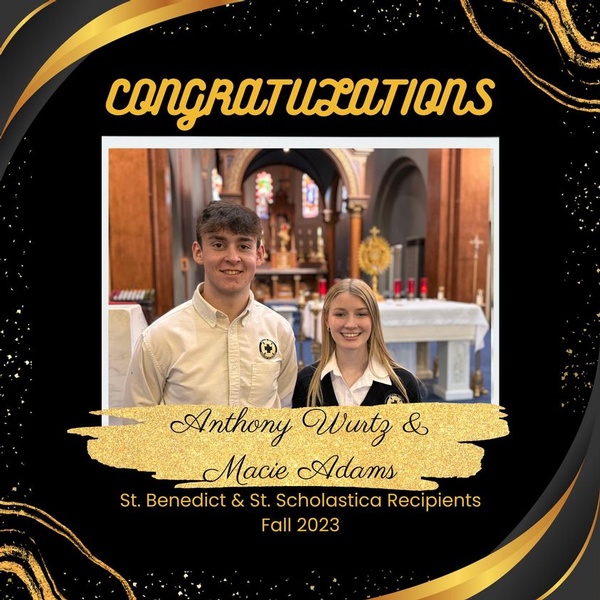 Congratulations to Anthony Wurtz and Macie Adams for being awarded the Fall 2023 St. Benedict and St. Scholastica Awards.