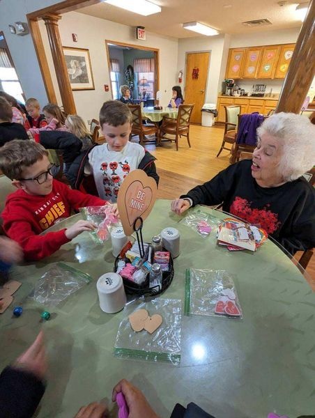 Hiawatha Elementary 1st grade made Valentine cards for our friends at Vintage Park At Hiawatha! We were able to hand deliver the cards and spend some time visiting with the residents. We ended our time playing a game called "pass the love". We were thankful for the invitation from Vintage Park to allow us to come visit on this special day!