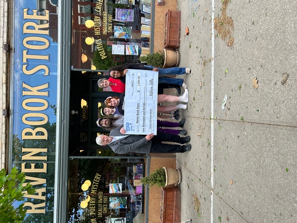 On Tuesday, April 16th, Kansas Poetry Out Loud State Champion, Victoria Jelks, presented the Raven Book Store in Lawrence a $1000.00 check for poetry books for the Horton High School library. The state winner each year receives $500.00 to spend on poetry books for their high school. Victoria won another $500.00 for poetry books when she became a national semifinalist at the competition in Washington, DC, in 2023.