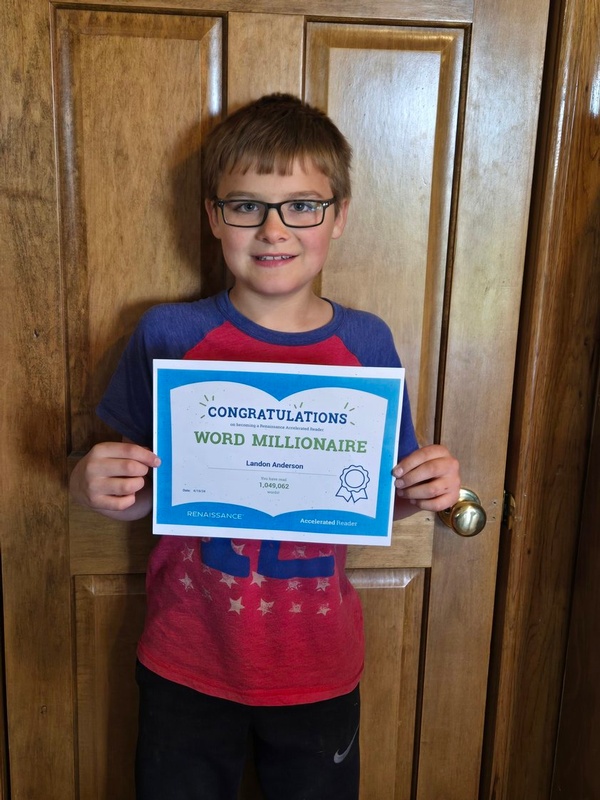 Congrats to Landon Anderson!!!! Posted April 22, 2024 09:58am Congratulations to Axtell School Student Landon Anderson who earned the title of World Millionaire by reading over a million words this year! Read All