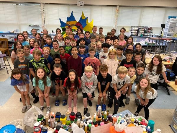 A job well done by our HES 4th graders who have been diligently working on their legacy project! Their leaf was purchased using the funds won by Miss Miller for the HES artroom last year from the Popsicle #StickWithArt contest. Students all came up with design ideas that themed the school and popsicles. Common theme ideas were then combined into one. One side showcases a Red Hawk waving with a bus in the background and backpack in the foreground. The other side depict some of them most loved brand of popsicles by students. The base has students names on the sides. The front “Home of the Jr Hawks” and the back “#StickwithArt” the base top houses the project they created as 3rd graders which won the contest, popsicles and art supplies. We are proud of their amazing craftsmanship, dedication to the project, and helping to create a beautiful piece of artwork for the community to enjoy for years to come! We think it’s pretty cool they are the third leaf that will be added to the town’s Fall In Love With Hiawatha community project. We bet the class of 2032 will see senior photos in the future with their leaf! The leaf will be on display at the Hiawatha Community Foundation’s Giveback Move Forward this weekend and we encourage you to check it out. It will then go for a clear coat of car paint, plaque, and eventually make it’s home back In front of the Elementary School! Well done Jr Hawks!