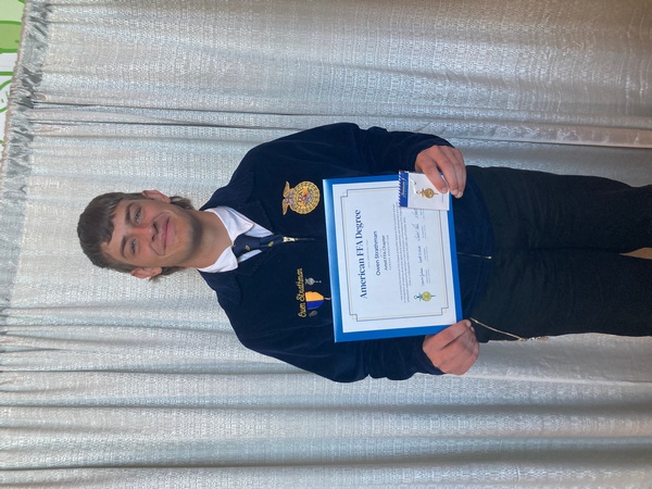 To be eligible, FFA members must have earned at least $10,000 or earned at least $2,000 and worked at least 2,250 hrs. outside of class time through a supervised agricultural experience (SAE) program in which they own their own business, hold a professional position as an employee, or conduct research. Recipients must also complete 50 hours of community service and demonstrate outstanding leadership abilities and civic involvement through the completion of a long list of FFA and community activities. Less than one percent of FFA members achieve the American FFA Degree.