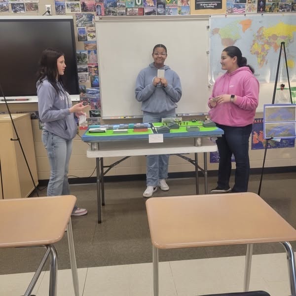 8th grade STEM students: Deja Beck, Charli Keller, and Gabby Mackey competed in the Future City Competition today in Topeka. The girls spent a semester of researching, planning, designing, writing and building a futuristic, floating city. With the help of our community mentor, Tom Martin, they did a great job having innovative ideas centered around clean and healthy living. Things like a water distillation center, UV lights and microorganisms in plumbing and aeroponic grow towers among others, the girls presented their ideas to different panels of judges!!