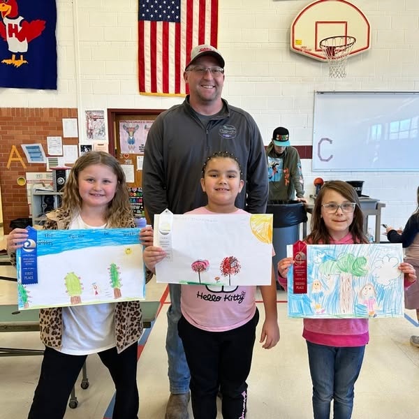 Brown County Conservation recently stopped by lunch at HES to award students for their excellent work on their conservation posters! Congratulations to students who were chosen as regional winners! BIG congratulations to the Grand Champion, Lilah Aller for being chosen as the overall winner from Brown County!