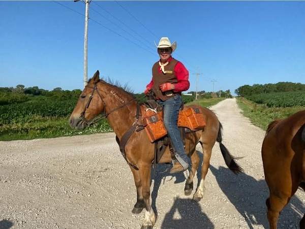 Roy Winkler and Pork Chops carried the mail 8 or 9 times over the course of the 20 some hours we were gone for the Pony Express Re-Ride. He was running hard yet at the end, which says he loves his job! The best stretch was between Summit and Seneca while it was still pretty cool. All the riders on that stretch had fresh horses and could ride hard and fast. They gained all of the 3 hours that they needed to get back on time before Seneca coming in at the scheduled 9:00 AM.