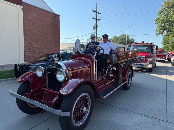 The Seneca Fire Department has always held a lot of pride in the 1922 Stutz. That is why no one but fireman have been allowed to ride the Stutz, unless there is a unanimous vote by the department to allow it. The Seneca Fire Department asked OC Osterhaus to ride on the Stutz in the Nemaha County Fair Parade as a Thank You for the endless amount of work that he donated. OC spent countless hours making sure that our refurbished Stutz wheels were as perfect as they could possibly be.