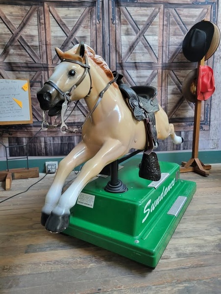 Kids, come put on a cowboy hat, get on the Pony, have your important people take your picture and giddy-up-go on a free ride.