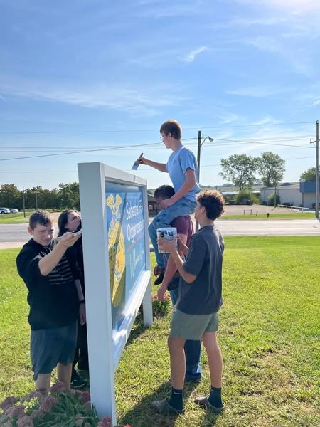 Sabetha Blue Jays Refresh FFA Sign Posted September 11, 2025 10:12am Sabetha High School's Mr. Cox’s carpentry class freshening up the FFA sign. Crayton makes a pretty good ladder! Read All