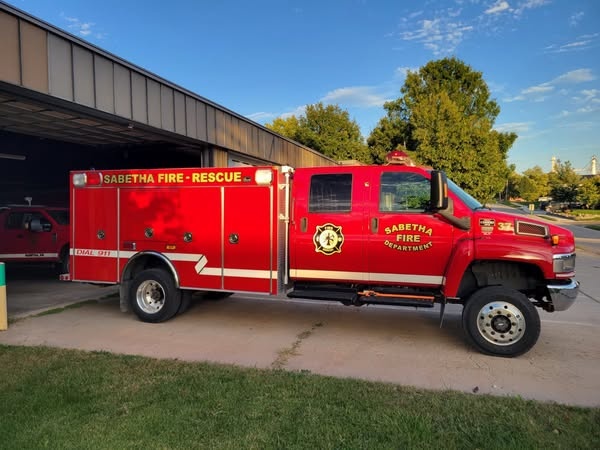 The New Rescue 37 was purchased with funds from the Greater Sabetha Community Foundation to replace the old resque truck that didn't have room for all the required equipment that the fire department needs to bring to emergency situations. The truck was purchased from the Purple Wave for $50,000, and is now being fitted out with new equipment and new lights. The next upgrade will be to replace the strut system.