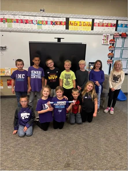 The Nemaha Central 2nd Graders had the most "pep" and were thrilled to win the "Spirit Stick" at the last MS Pep Rally. Students look forward to competing for the "Spirit Stick". At the end of each pep rally each class gives a big "Thunder cheer" at the end. The Nemaha Central Cheerleaders judge who gave the loudest, most energetic cheer. The winning class gets to hold the "Spirit Stick" until the next pep rally where they get a chance to keep the prize or pass it on to the next class with the biggest cheer.