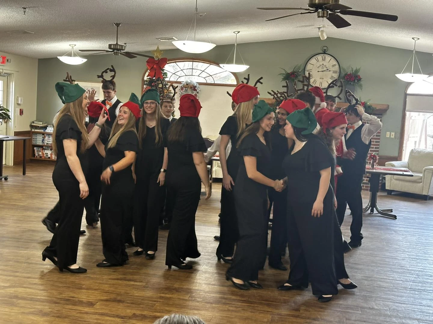 On Monday, December 8th, Atchison Senior Village welcomed a special performance from the Atchison County Community High School Soundmasters. Residents enjoyed Christmas songs and dancing led by Amy Eckert, the 5th–12th grade music teacher in Effingham. The group truly brought the spirit of Christmas and a wonderful, positive vibe to everyone in attendance.