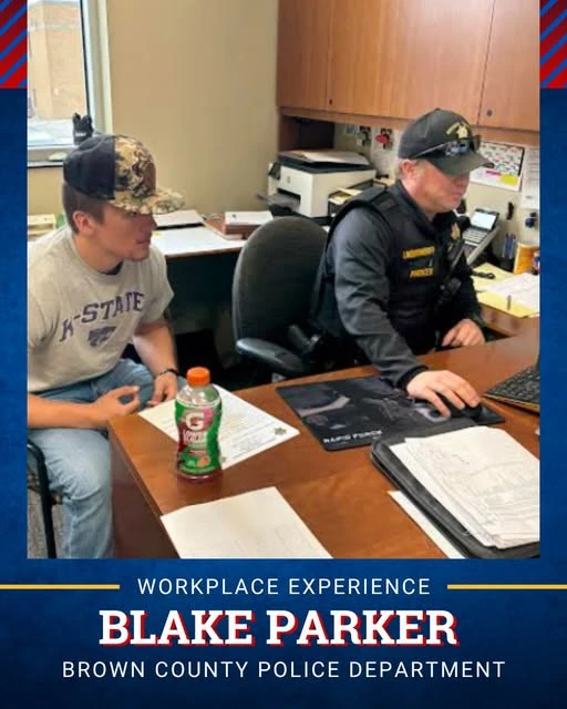 This semester, Blake Parker completed his Job Workplace Experience with the Brown County Police Department to gain a better understanding of law enforcement. His interest in this career began at a young age, growing up around the profession and watching his father serve with the department. Blake is drawn to the daily challenges of law enforcement and the excitement of never knowing what each day may bring.